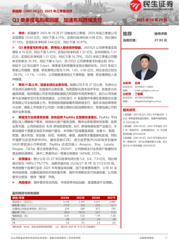 【民生证券】【202510】2025年三季报点评:Q3单季度毛利率回暖,加速布局跨境支付-3页