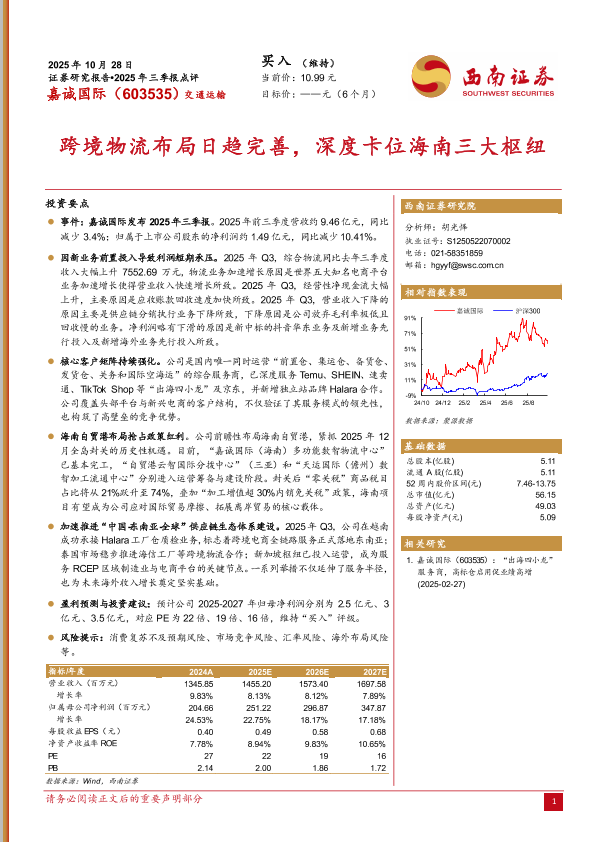 【西南证券】【202510】2025年三季报点评:跨境物流布局日趋完善,深度卡位海南三大枢纽-5页