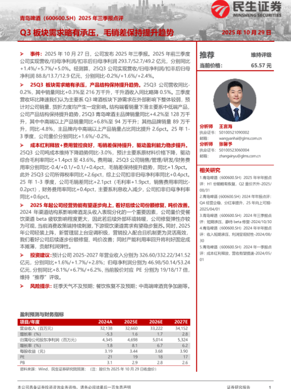 【民生证券】【202510】2025年三季报点评:Q3板块需求略有承压,毛销差保持提升趋势-3页