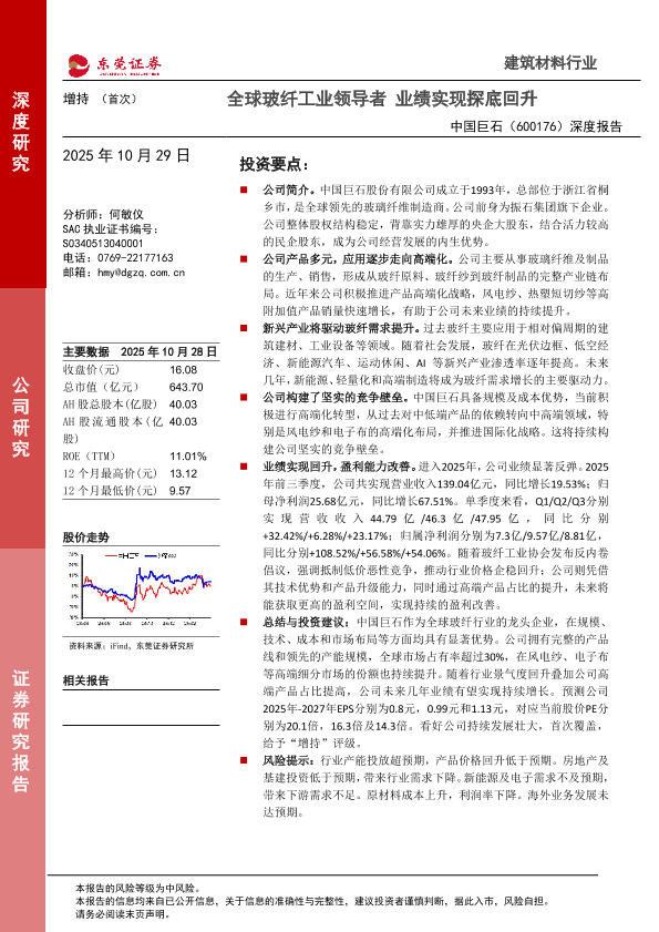 【东莞证券】【2025】全球玻纤工业领导者 业绩实现探底回升-11页