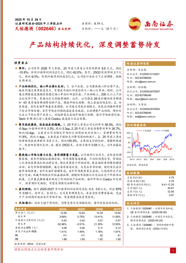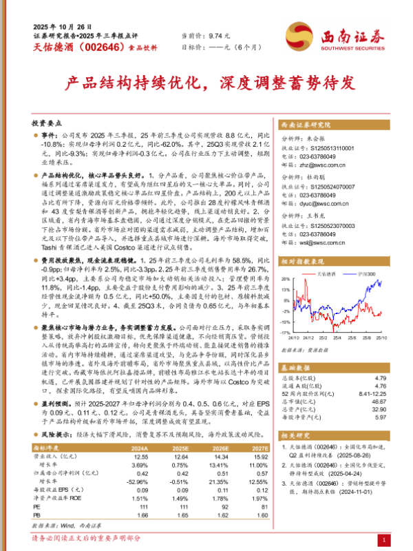 【西南证券】【202510】天佑德酒(002646):2025年三季报点评-6页
