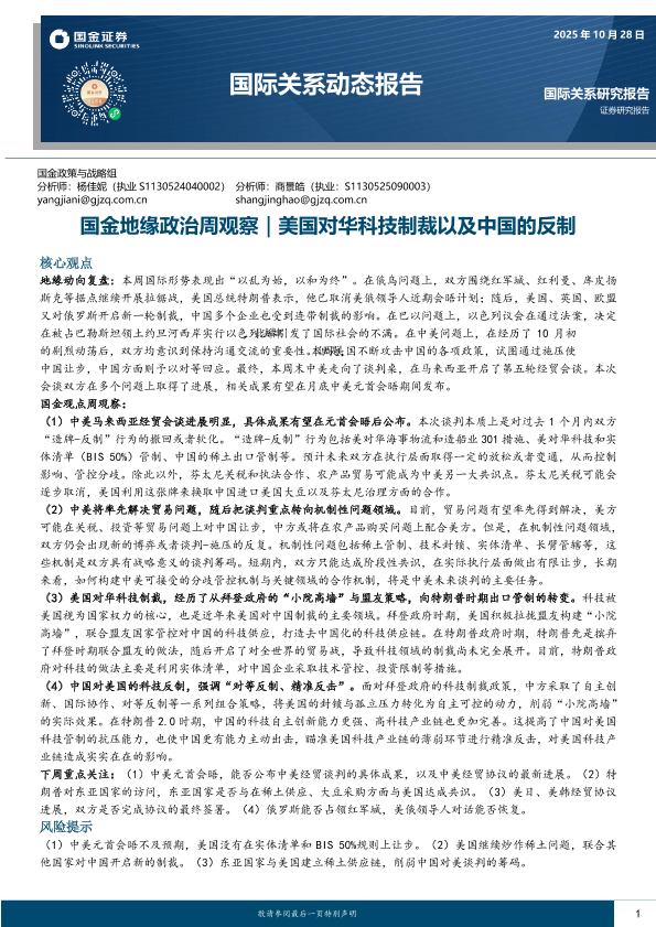 【国金证券】【202510】国金地缘政治周观察|美国对华科技制裁以及中国的反制-15页