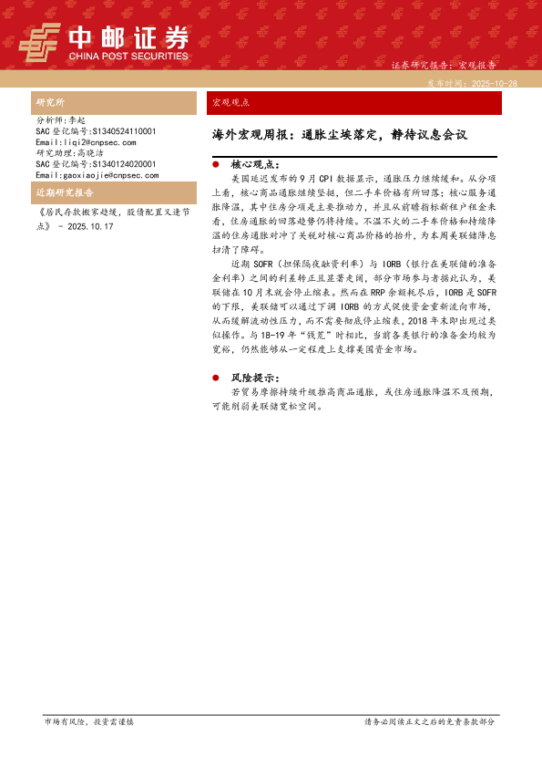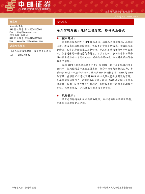 【中邮证券】【202510】海外宏观点报:通胀尘埃落定,静待议息会议-11页