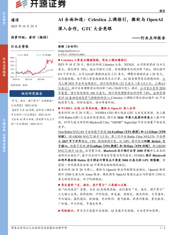 【开源证券】【202510】AI全面加速:Celestica上调指引,微软与OpenAI深入合作,GTC大会亮眼-3页