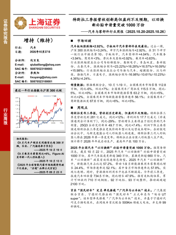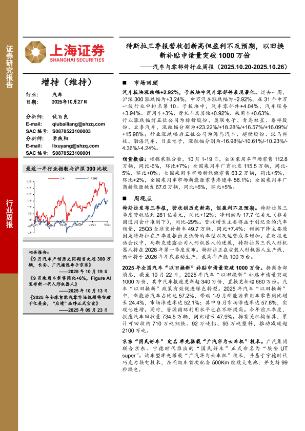 【上海证券】【202510】特斯拉三季报营收创新高但盈利不及预期,以旧换新补贴申请量突破1000万份-3页