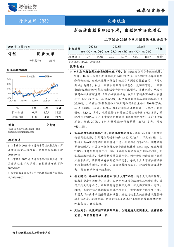 【财信证券】【202510】上市猪企2025年9月销售简报数据点评_商品猪出栏量环比下滑_出栏体重环比增长-2页