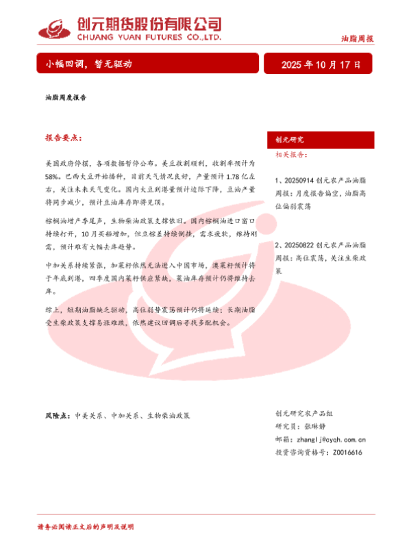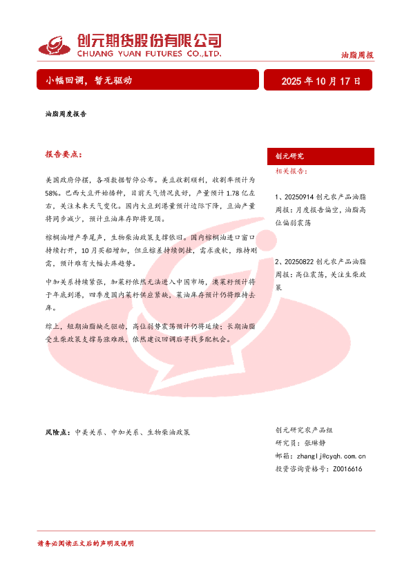 【创元研究】【202510】油脂周度报告_小幅回调_暂无驱动-19页