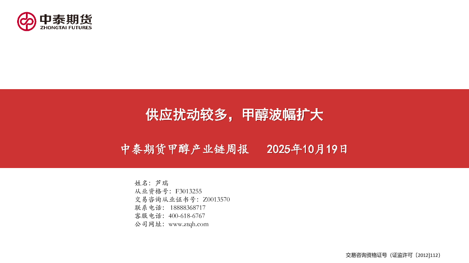 【中泰期货】【202510】中泰期货甲醇产业链周报-23页