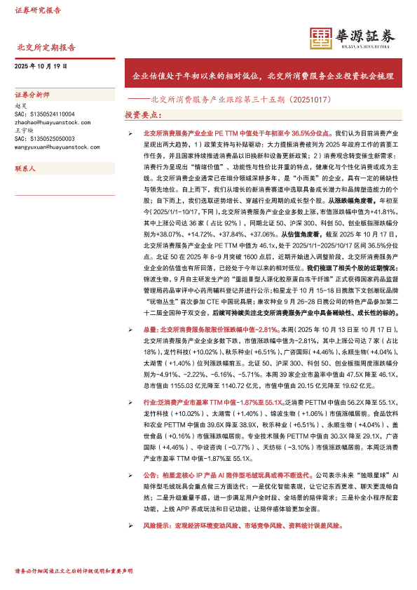 【华源证券】【202510】企业估值处于年初以来的相对低位——北交所消费服务产业跟踪第三十五期(20251017)-15页