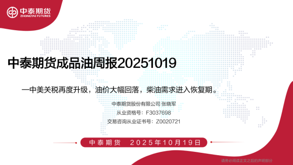 【中泰期货股份有限公司】【202510】20251019-中泰期货-成品油周报_中美关税再度升级_油价大幅回落_柴油需求进入恢复期-87页