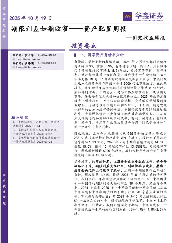 【华鑫证券】【202510】期限利差如期收窄——资产配置周报-20页