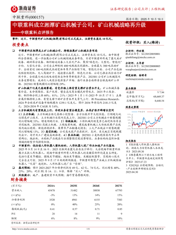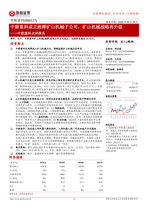 【浙商证券】【202510】中联重科成立湘潭矿山机械子公司 矿山机械战略再升级-4页