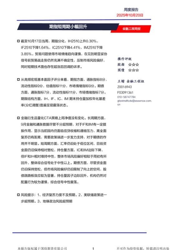 【国投期货有限公司】【202510】期指短周期小幅回升-8页