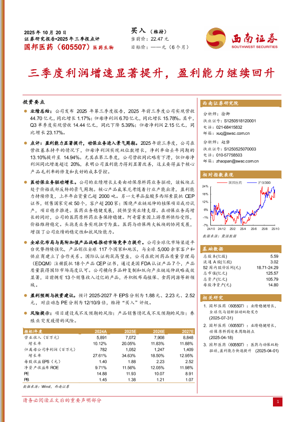 【西南证券】【202510】国邦医药(605507)2025年三季报点评-5页