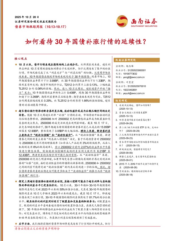 【西南证券】【202510】如何看待30年国债补涨行情的延续性?-25页