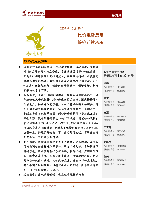 【铜冠金源期货】【202510】比价走势反复 锌价延续承压-8页