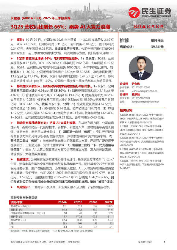 【民生证券】【202510】2025年三季报点评:3Q25营收同比增长66%;乘势AI大算力浪潮-3页