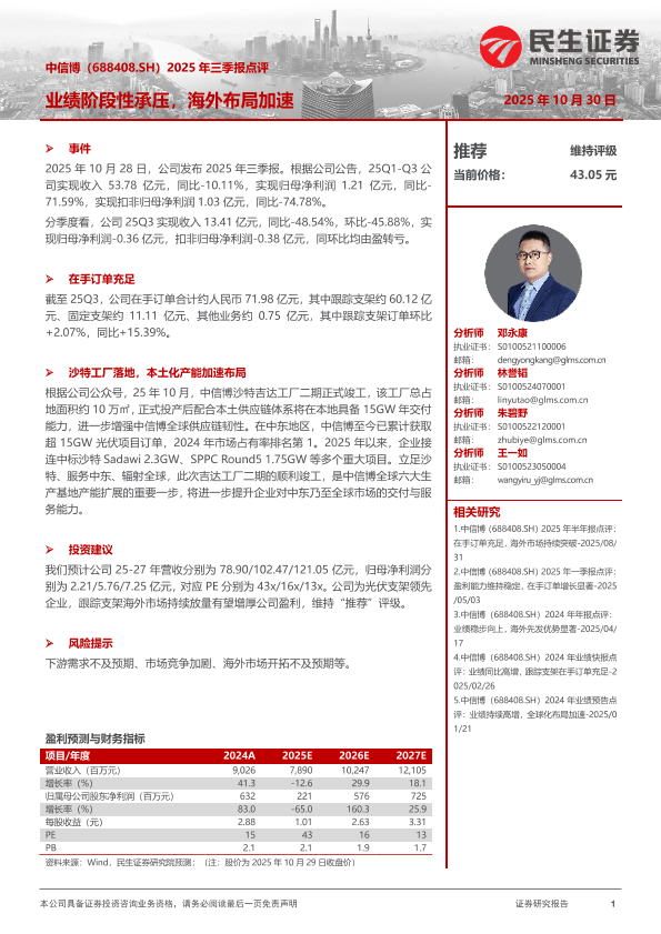 【民生证券】【202510】2025年三季报点评:业绩阶段性承压,海外布局加速-3页