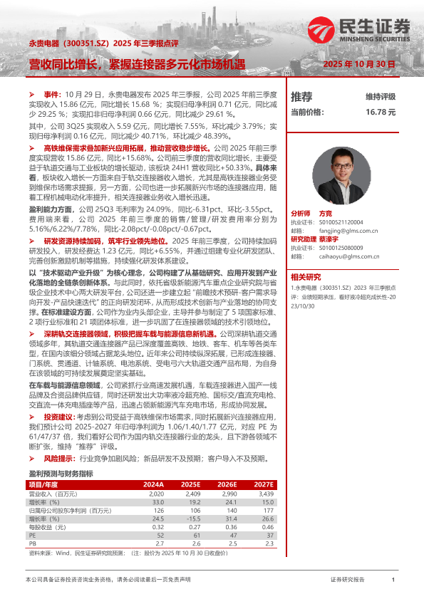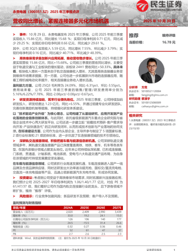 【民生证券】【202510】2025年三季报点评:营收同比增长,紧握连接器多元化市场机遇-3页