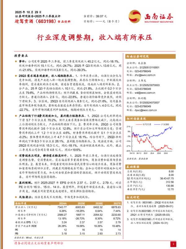 【西南证券】【202510】迎驾贡酒(603198):2025年三季报点评-7页
