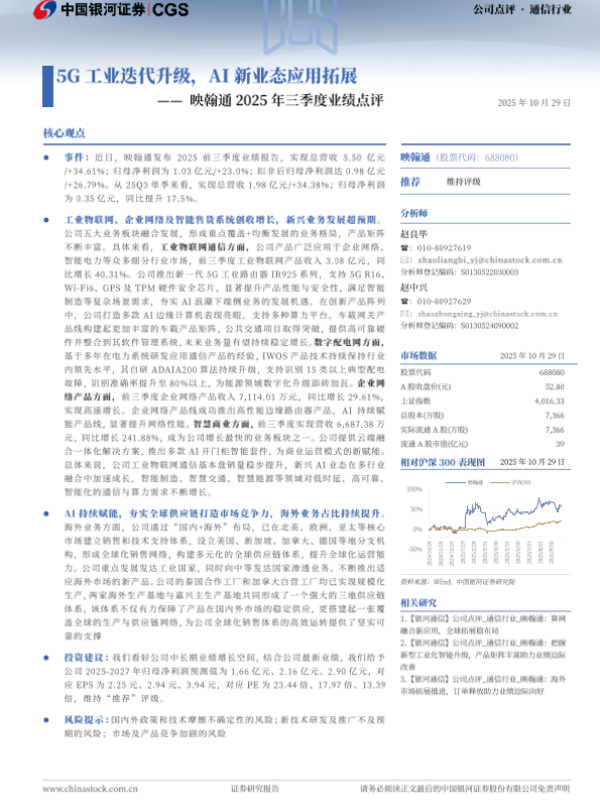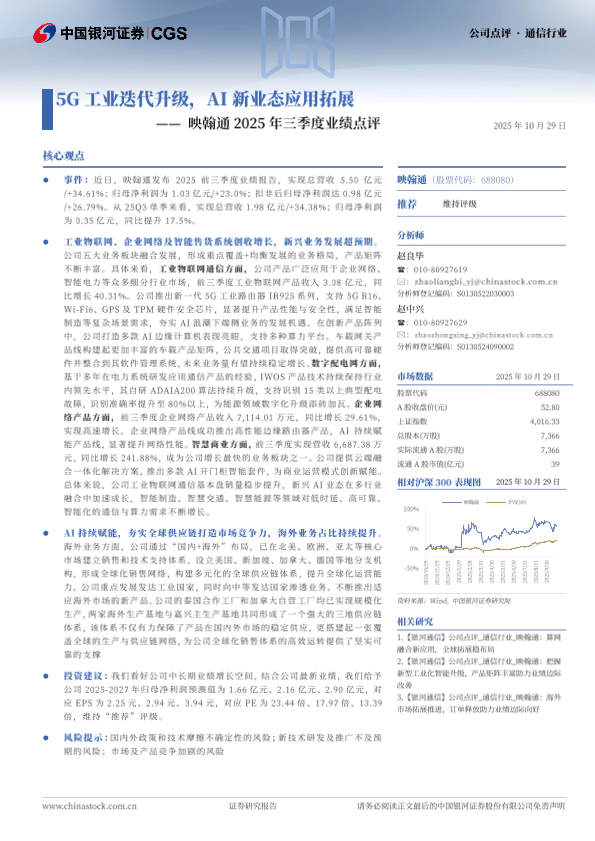 【银河证券】【202510】映翰通2025年三季度业绩点评:5G工业迭代升级,AI新业态应用拓展-4页