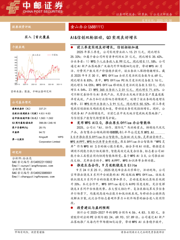 【中邮证券】【202510】AI&信创双轮驱动,Q3实现良好增长-5页