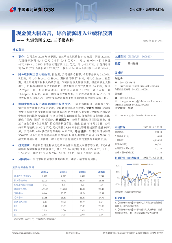 【银河证券】【202510】现金流大幅改善,综合能源进入业绩释放期——九洲集团 2025三季报点评-3页