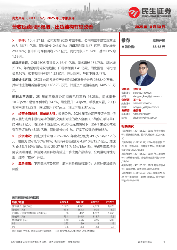 【民生证券】【202510】2025年三季报点评:营收延续同环双增,出货结构有望改善-3页