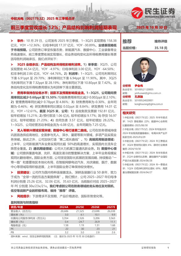 【民生证券】【202510】2025年三季报点评:前三季度营收增长12%;产品结构影响利润短期表现-3页