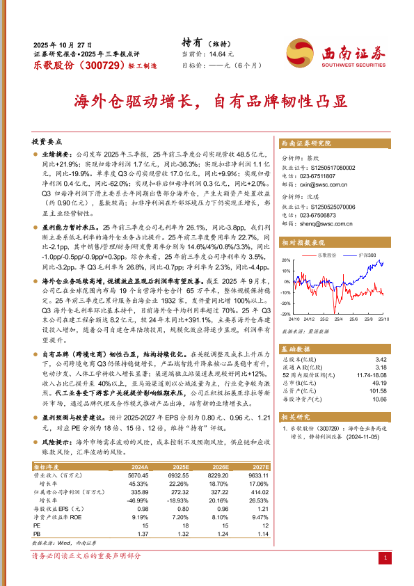 【西南证券】【202510】2025年三季报点评:海外仓驱动增长,自有品牌韧性凸显-6页