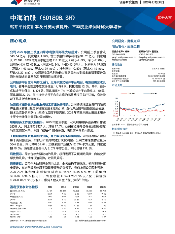 【国信证券】【202510】钻井平台使用率及日费同步提升,三季度业绩同环比大幅增长-7页