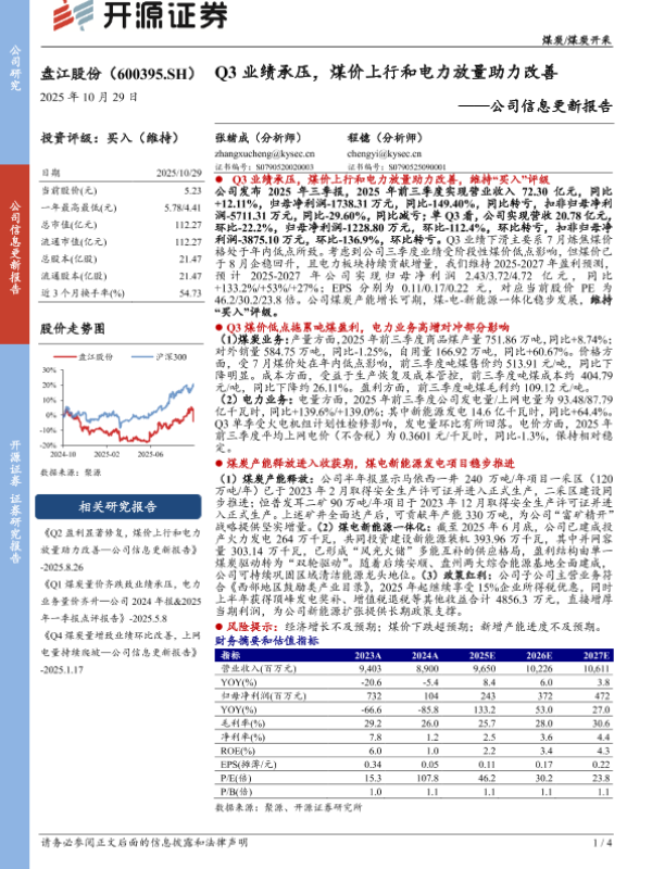 【开源证券】【202510】Q3业绩承压,煤价上行和电力放量助力改善-4页
