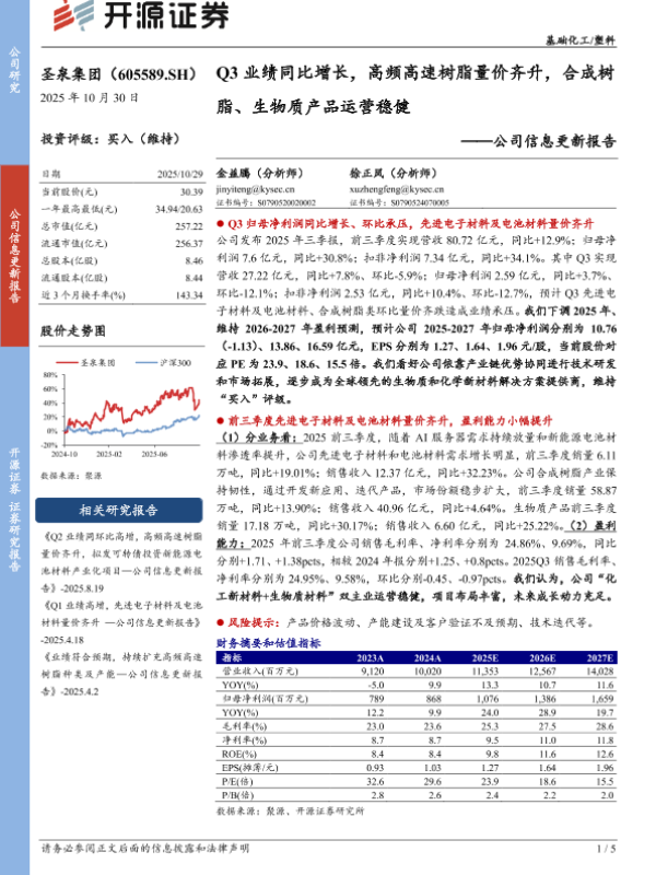 【开源证券】【202510】Q3业绩同比增长,高频高速树脂量价齐升,合成树脂、生物质产品运营稳健-5页