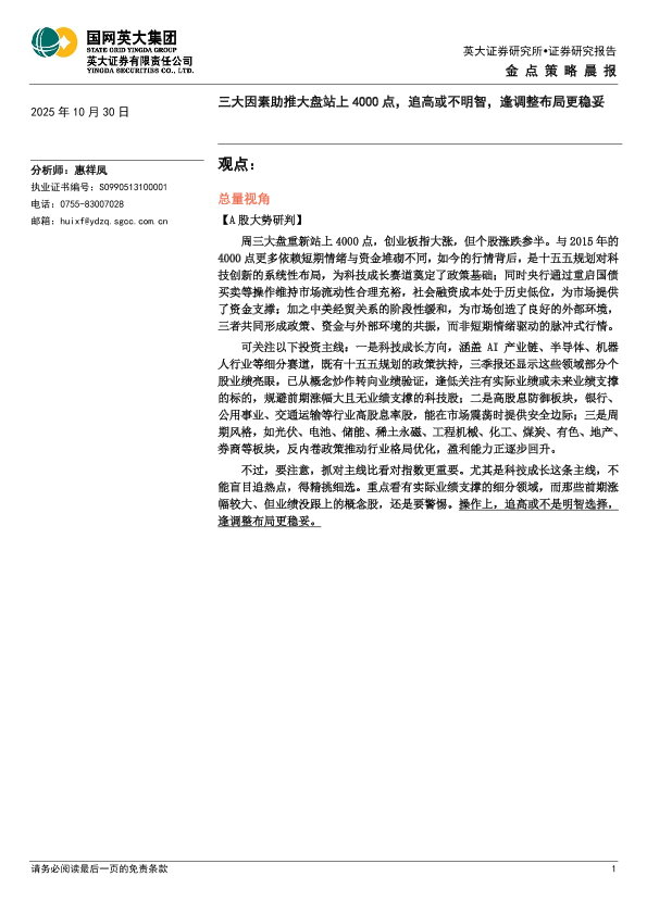 【英大证券】【202510】三大因素助推大盘站上4000点,追高或不明智,逢调整布局更稳妥-4页