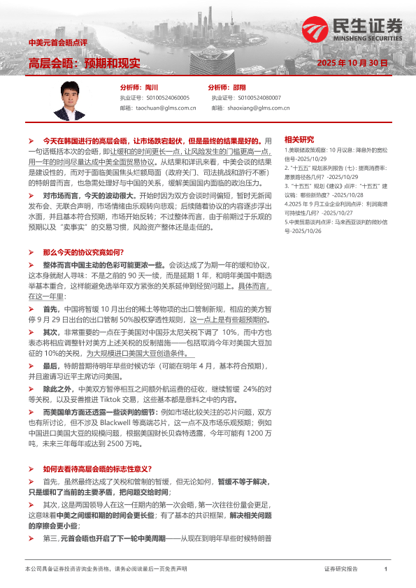 【民生证券】【202510】中美元首会晤点评:高层会晤:预期和现实-5页