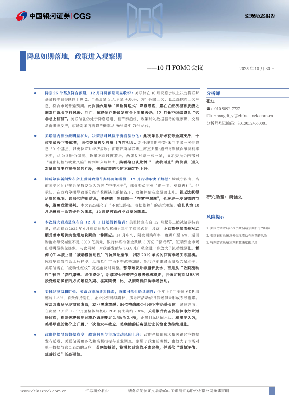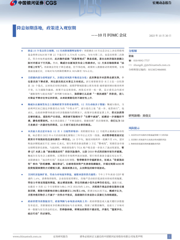 【银河证券】【202310】10月FOMC会议:降息如期落地,政策进入观察期-5页