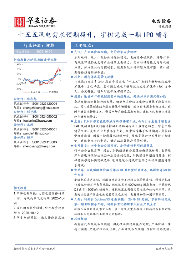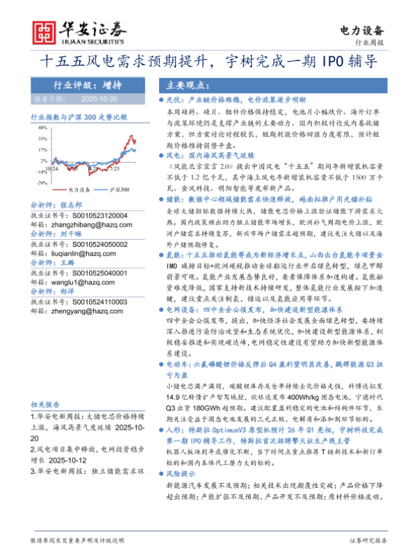【华安证券】【202510】电力设备行业周报:十五五风电需求预期提升,宇树完成一期IPO辅导-14页