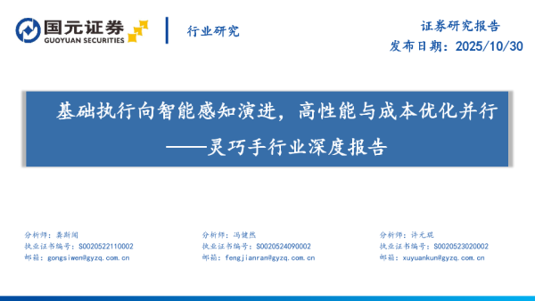 【国元证券】【202510】基础执行向智能感知演进,高性能与成本优化并行——灵巧手行业深度报告-39页