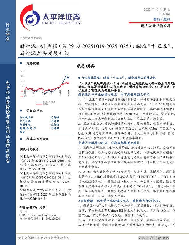 【太平洋证券】【202510】新能源+AI周报(第29期 20251019-20251025):瞄准“十五五”,新能源龙头发展升级-26页
