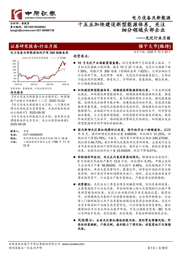 光伏行业 行业月报 投资建议 十五五规划 新能源