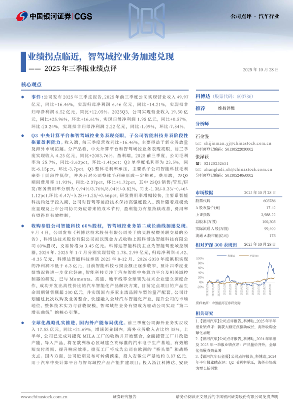 【银河证券】【202510】业绩拐点临近,智驾域控业务加速兑现2025年三季报业绩点评-4页
