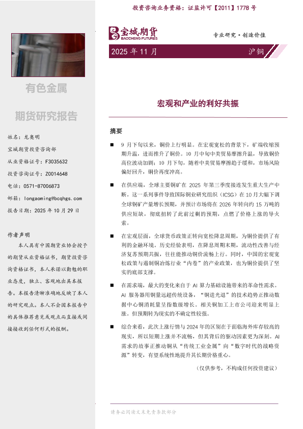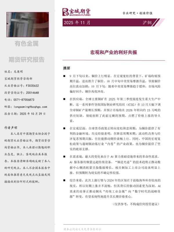 【宝城期货投资咨询部】【202510】铜 | 月报-18页