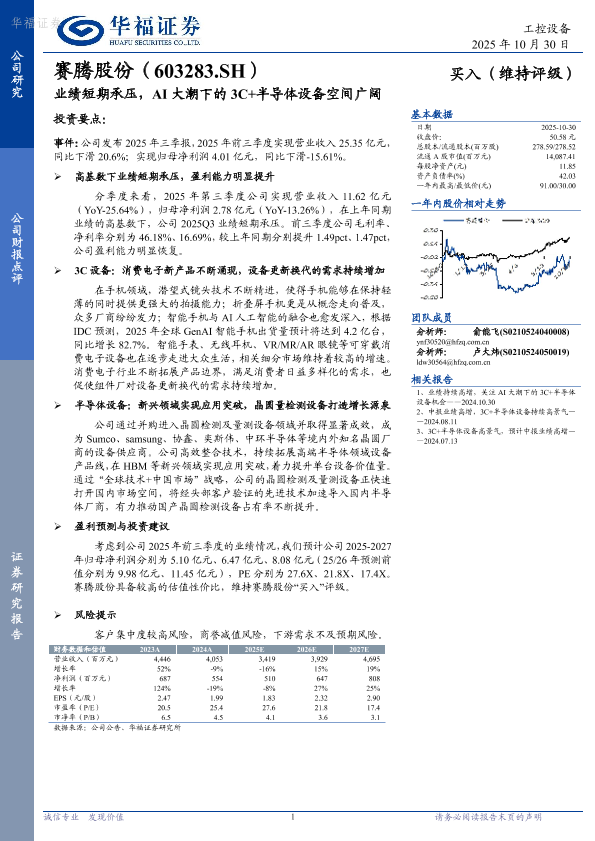 【华福证券】【202510】业绩短期承压,AI大潮下的 3C+半导体设备空间广阔-3页