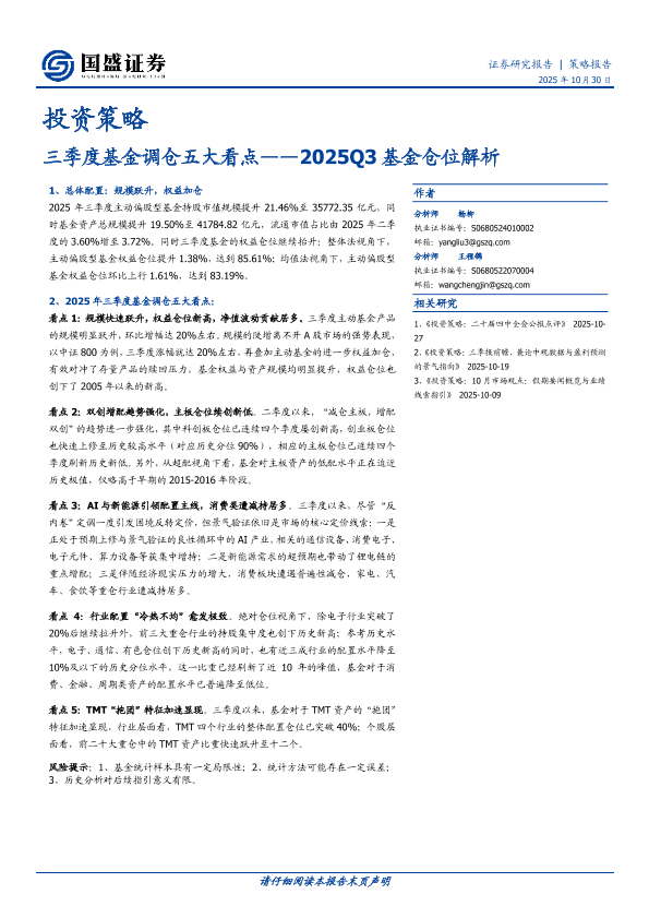 【国盛证券】【202510】三季度基金调仓五大看点——2025Q3基金仓位解析-10页
