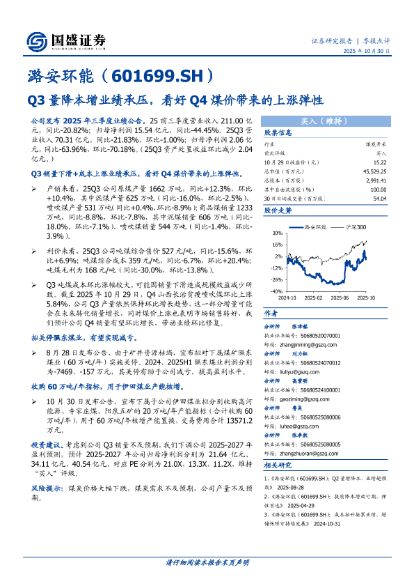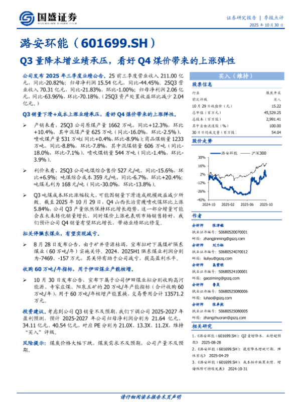 【国盛证券】【202510】Q3量降本增业绩承压,看好 Q4煤价带来的上涨弹性-4页