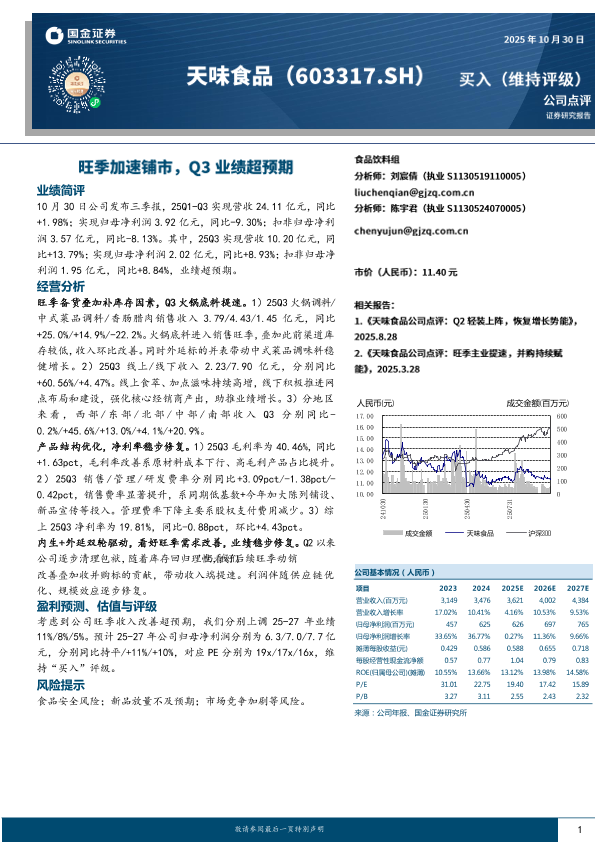 调味品 火锅底料 净利率修复 三季报 业绩超预期