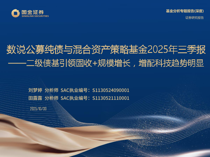 【国金证券】【202503】数说公募纯债与混合资产策略基金2025年三季报一二级债基引领固收+规模增长,增配科技趋势明显-35页