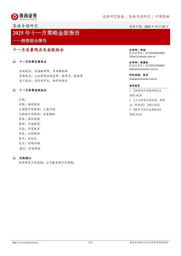 【浙商证券】【202510】2025年十一月策略金股报告——投资组合报告-15页