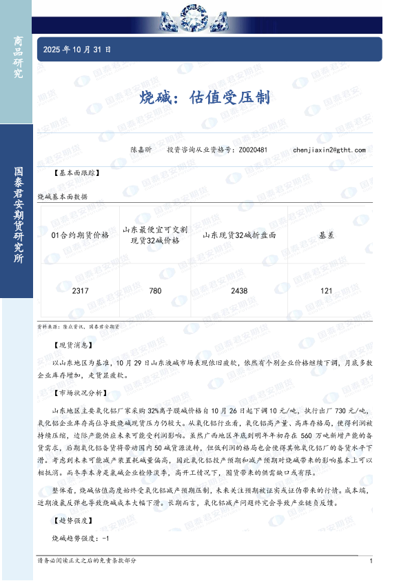 【国泰君安期货】【202510】烧碱:估值受压制-3页