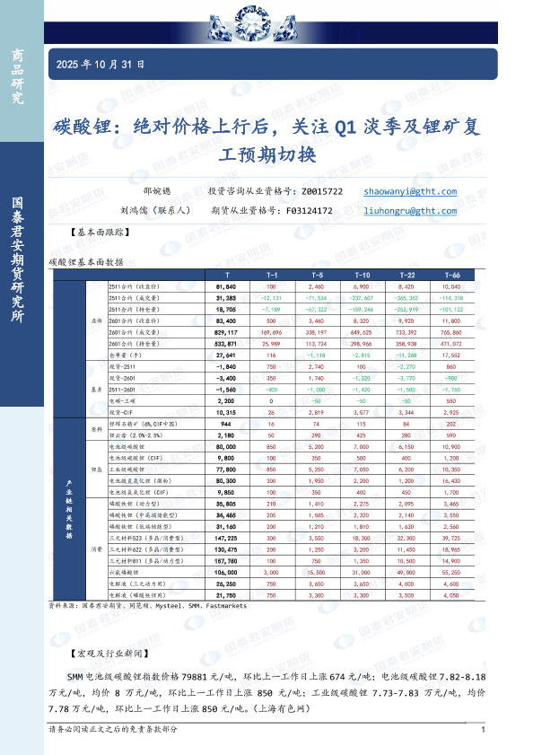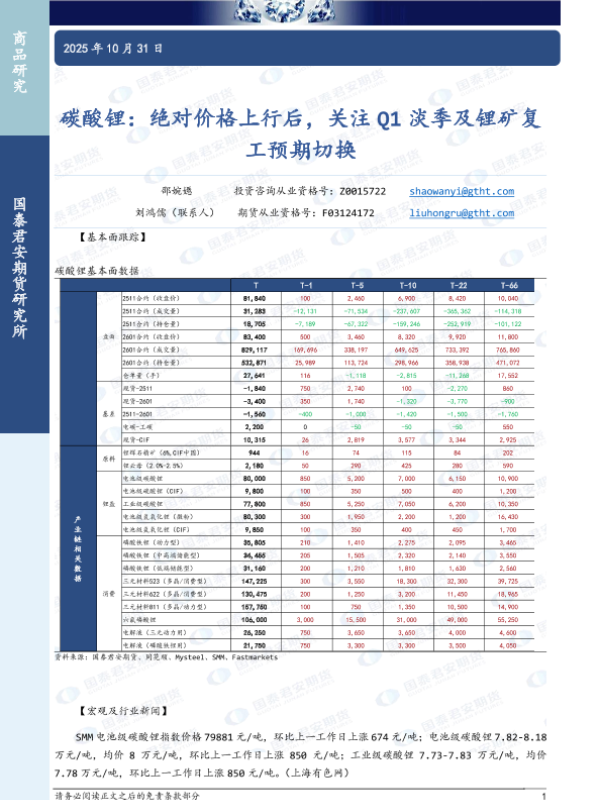 【国泰君安期货】【202310】碳酸锂:绝对价格上行后,关注Q1淡季及锂矿复产预期切换-3页
